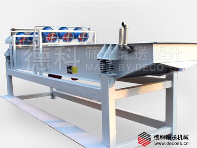 雙冷卻振動輸送機(jī)又叫水冷/風(fēng)冷一體式降溫輸送機(jī),冷卻輸送機(jī)等。是由德科資深工程師設(shè)計,在慣性振動輸送機(jī)(中距離)的基礎(chǔ)上專門針對需要降溫處理的高溫物料進(jìn)行輸送,實(shí)現(xiàn)一定的降溫效果,并且可以帶有簡易篩分作用(網(wǎng)孔≥5mm),適用于顆粒狀以及小塊狀物料的降溫輸送。